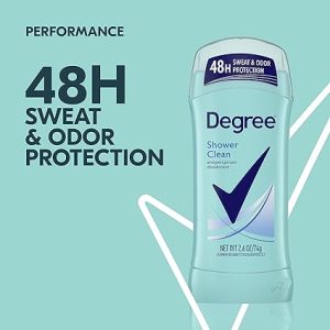Degree Shower Clean Antiperspirant Deodorant delivers the protection you need to keep you feeling dry and fresh. This antiperspirant deodorant for women offers 48-hour odor protection, so you can start moving and take on the day. Our Shower Clean Antiperspirant Deodorant works as hard as you do to keep you feeling fresh and more protected….