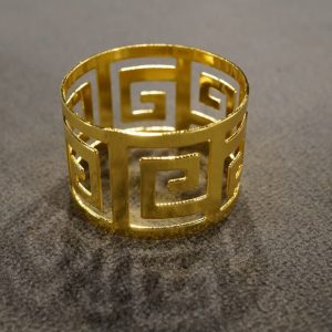 I am offering you this vintage yellow gold tone napkin rings. These napkin rings feature the classic geometric Greek key design. These measure app. 1 3/4 inches in diameter, by app. 1.25 inches wide. These are coming to you fresh out of an estate from here in upstate New York