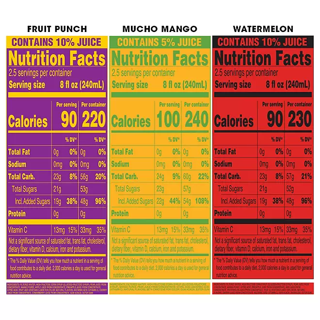 This is a delightful selection of fun-tasting juice cocktails that you can use to hydrate yourself and please your tastebuds at the same time. Once you purchase this pack, you’ll find that these juice cocktails come in three separate flavors: Watermelon, Mucho Mango, and Fruit Punch.