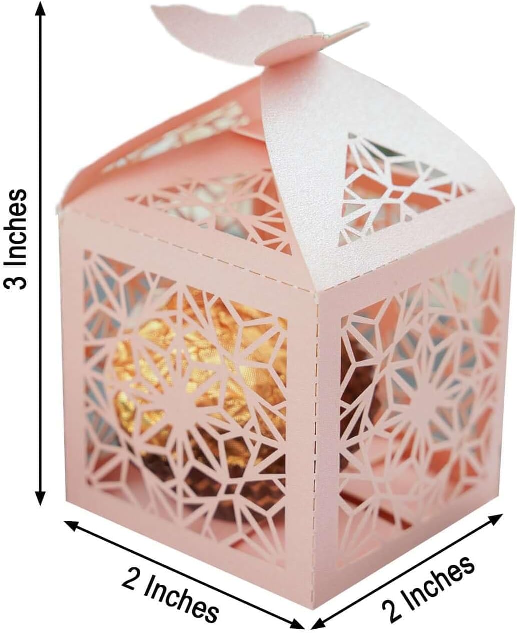 Blush/Rose Gold Gold Butterfly Top Laser Cut Favor Candy Gift Boxes ( 25 Pcs)