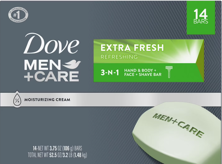 Dove Men+Care Body and Face Bar Soap, Extra Fresh, 3.75 oz.