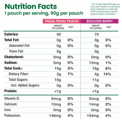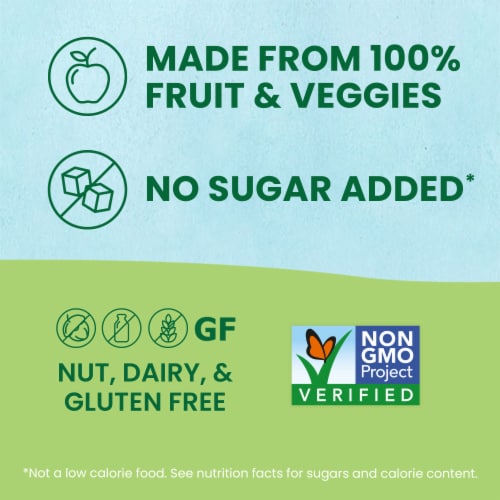 - Unsweetened fruit and veggie pouches made from 100% real fruit, kosher certified, non-GMO, gluten free, nut free, dairy free, no added colors, flavors, or high fructose corn syrup
