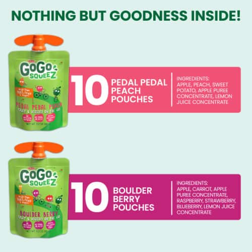 - Fruit & VeggieZ on the GoGo made from 100% real fruit in portable, BPA-free, squeezable pouches