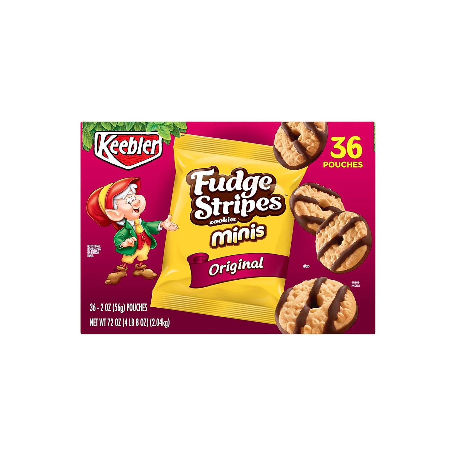 Make snack time more fun with the Keebler Elves and a batch of yummy Keebler Fudge Stripes Minis Cookies. These delightful treats are fresh from the Hollow Tree and feature the irresistible combination of scrumptious shortbread cookies with delectable drizzles of fudge-flavored stripes. Packaged for the whole family, Keebler Fudge Stripes Minis Cookies are made with pantry-perfect staples like enriched flour and cocoa for a satisfying anytime dessert treat. No matter your age, Keebler Fudge Stripes Cookies are perfectly packaged for group snacks at school, the office, traveling, lunchtime, at the game, and more—the Uncommonly Good options are endless. Satisfy your chocolate craving with Keebler Fudge Stripes Minis Cookies.