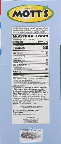 When you need a tasty snack for kids of all ages, choose the juicy goodness of Mott’s Assorted Fruit Flavored Snacks! Not only are these bite-sized gummies wholesome and delicious, but they are also made out of real fruit and veggie juices. Plus, these gluten-free Fruit Flavored Snacks have 60% daily value of vitamin C per serving and no artificial flavors. You’ve finally found the perfect after-school snack that’s a win for you and your kids! Individually wrapped for on-the-go convenience, Mott’s Assorted Fruit Flavored Snacks pouches are a treat the whole family can enjoy. Contains 40 assorted fruit flavored snack pouches in total.