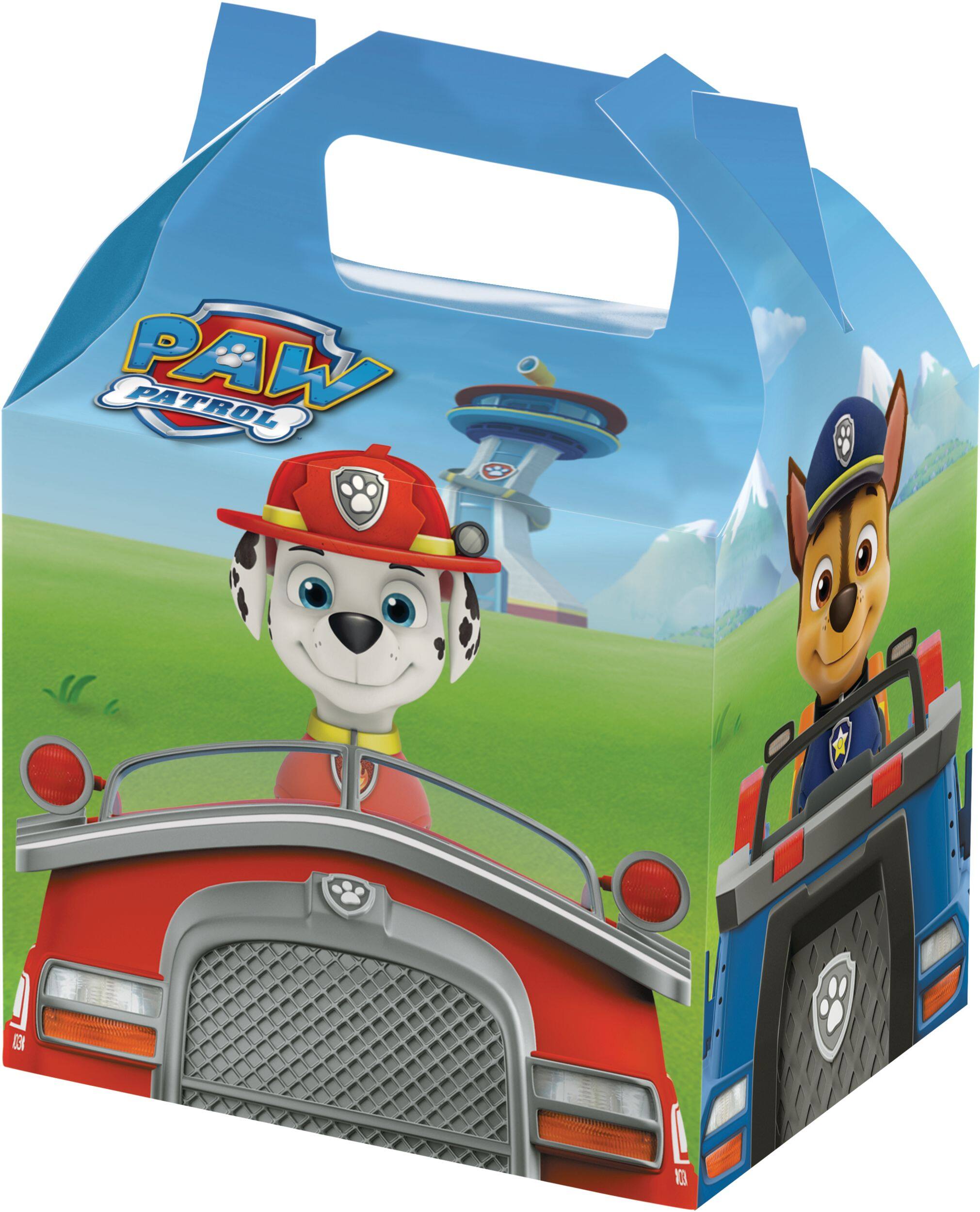 These ready-to-fill Paw Patrol treat boxes with handle are perfect for storing party loot or take-home gifties at any PAW Patrol birthday bash. The flat-packed boxes feature Chase and Marshall in their rescue vehicles and easily form into sturdy cubbies to fill with tiny toys and candies the birthday boy or girl is sure to love. This set of 8 boxes will have all the pups covered so the celebration stay rolling along.