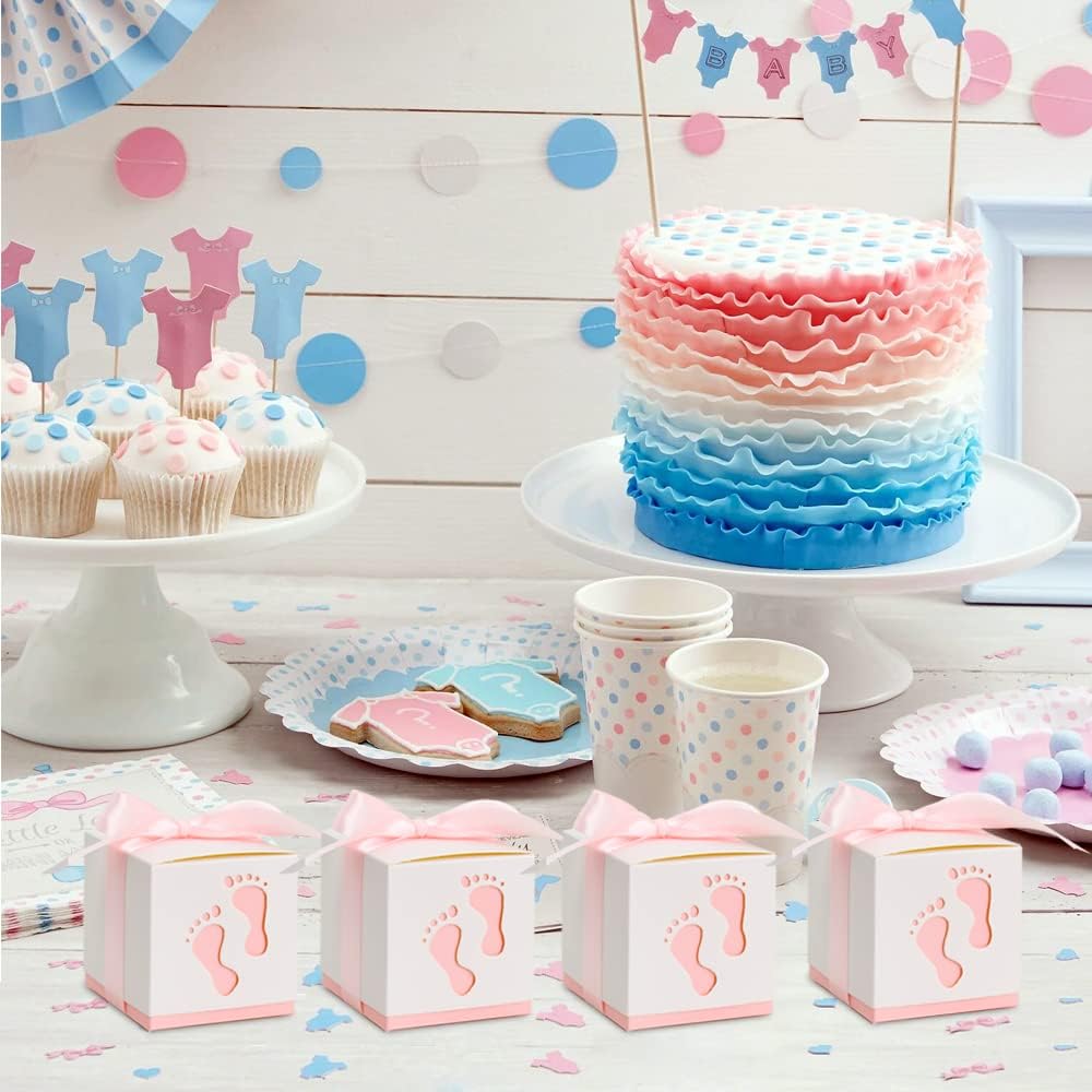Pink Footprint Baby Shower Party Favor Candy Gift Boxes ( 25 Pcs)
