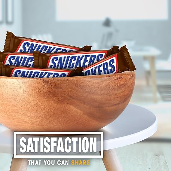 This bulk chocolate candy box includes 48 individually wrapped Full Size SNICKERS candy bars. Unsatisfied? Maybe you just need a SNICKERS. Packed with roasted peanuts, caramel, and nougat covered in milk chocolate, SNICKERS candy bars make your day go from “Meh” to “Satisfying” in just one bite. Individually wrapped bulk Full Size candy bars are ideal for keeping the pantry stocked for movie night with the family and small celebrations with friends. These satisfying candy bars make great on-the-go treats, pack them in lunches, or take them along on family road trips to enjoy peanut-packed chocolate candy on the road. Bulk SNICKERS candy bars are a tasty way to share your love of peanut chocolate candy with friends and family. Buying candy bars in bulk ensures you have plenty of chocolate on hand for filling candy bags and candy gift baskets. Be the best house on the block this Halloween when you hand out Full Size SNICKERS chocolate candy to Trick-or-Treaters. Full Size candy bars make great stocking stuffer candy gifts and Easter basket candy. SNICKERS Full Size chocolate candy bars make break time more satisfying. This 48-count bulk candy package is great for filling vending machines, concession stands, and even the office pantry. Stock up and share the satisfying taste of SNICKERS bulk candy with friends, family, and coworkers.