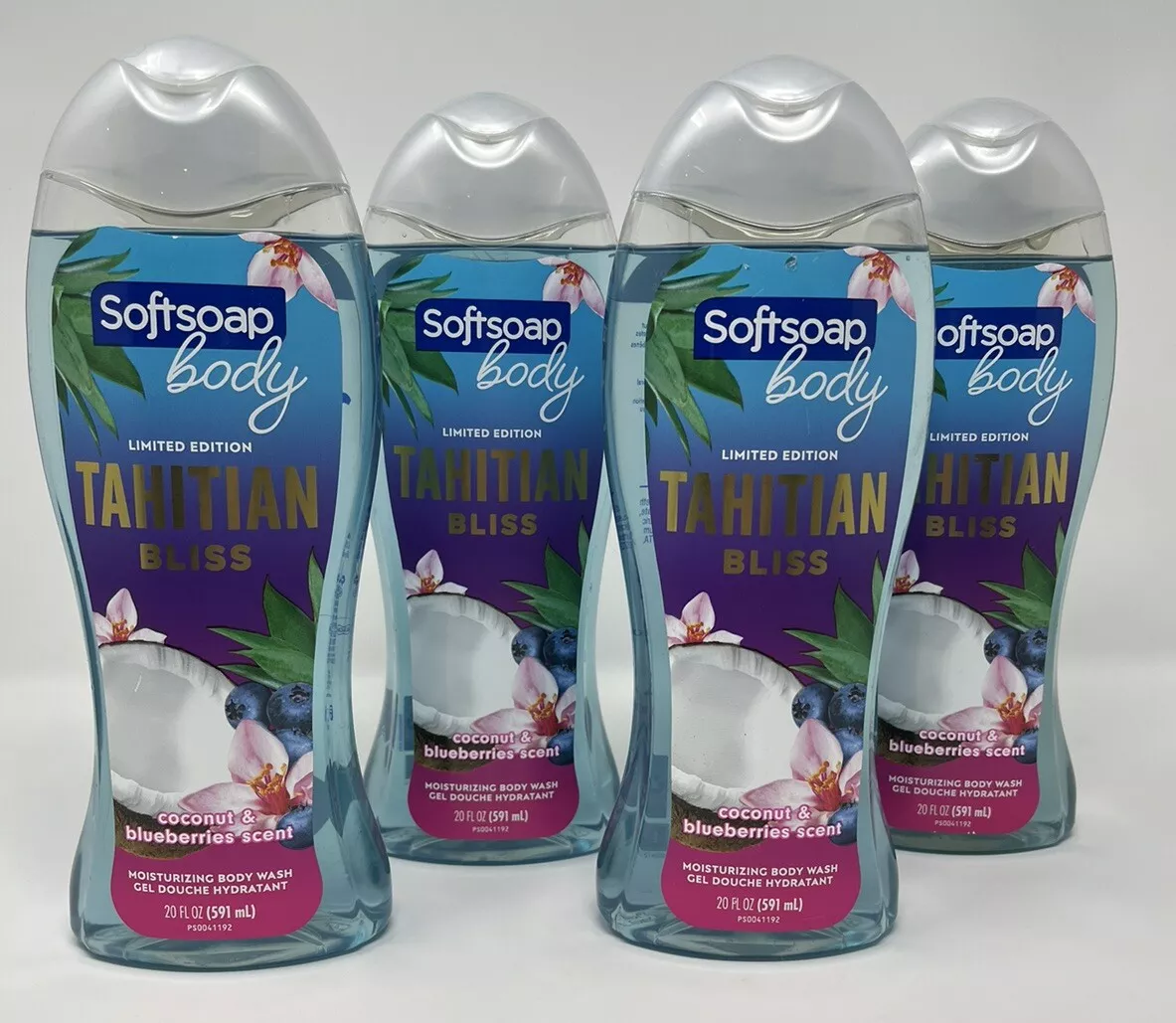 Set of 4Â Softsoap Tahitian Bliss Coconut & Blueberries Scent Body Wash 20 oz
