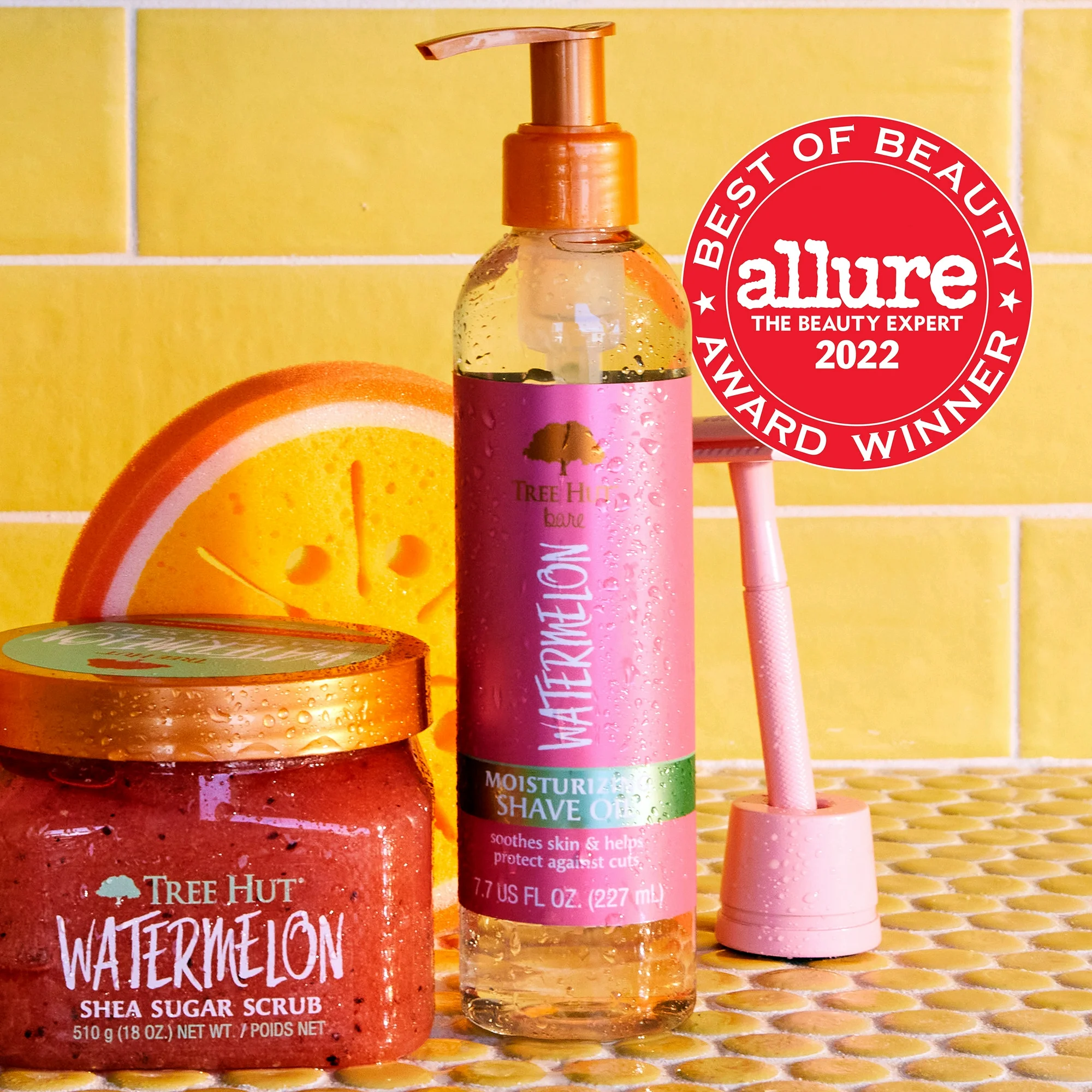 - Tree Hut Watermelon Moisturizing Shave Oil is powered by a proprietary technology to prevent irritation, nicks, and cuts from shaving by enhancing contact between the razor and skin for a close, smooth shave