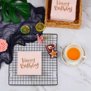These elegant pink and rose gold foil happy birthday cocktail napkins are the perfect party accessory and decoration for birthday celebrations festivities or themed parties. Each package includes a bulk set of 100 sheets, which is highly absorbent 3-ply tissue to ensure durability and comfort. Place them on your dining tables and bar tops to…
